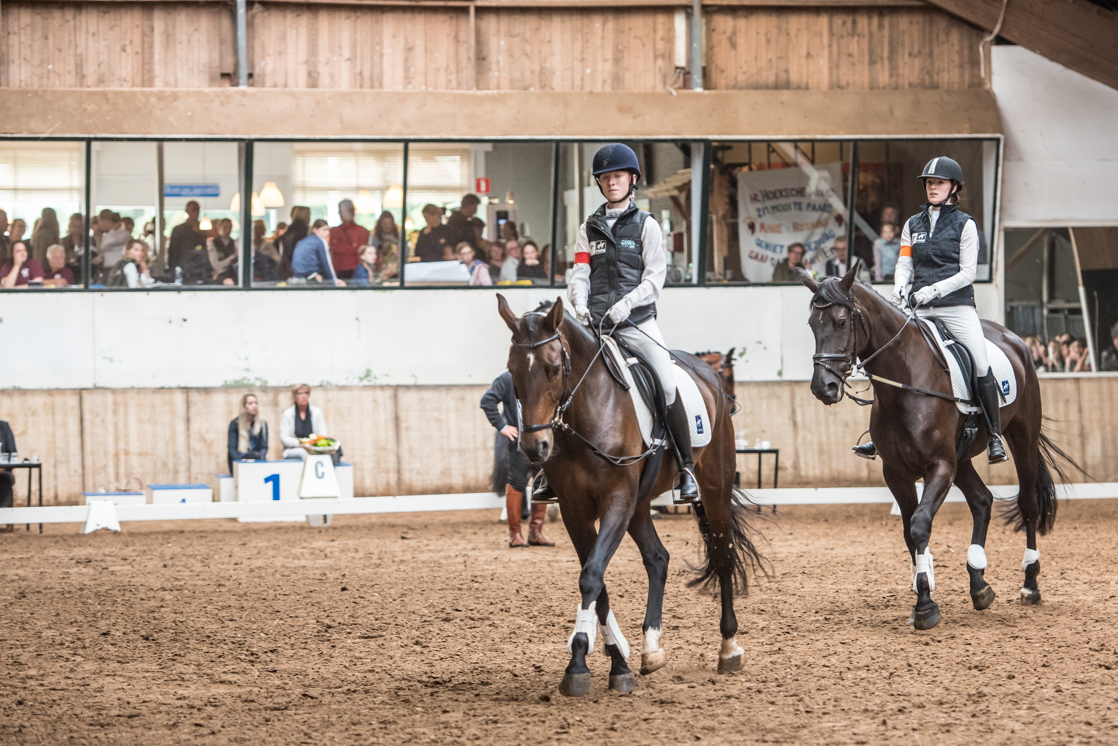 Al sinds jaar en dag organiseert Manege De Groote Wielen de Zitcompetitie op hun bedrijf en inmiddels hebben ze zelf ook al een aantal keer meegedaan. Al is het volgens Madeleine van Schagen wel een uitdaging om dit samen te brengen. “Als je met je ruiters meedoet, moet je als bedrijf ook mee. Maar wanneer je tegelijkertijd zelf een wedstrijd organiseert, kun je niet weg. Er komt best veel bij kijken, dat is niet niks. Gelukkig hebben wij de capaciteit ervoor en met een goed draaiboek is het nu al jaren het visitekaartje voor ons bedrijf. Als bedrijf wil je op zo’n dag alles op zijn best laten zien en wil je dat de ruiters die op jouw paarden en pony’s rijden succes hebben, zodat ze terugkomen. Daarnaast heb je genoeg mensen nodig voor de horeca, maar ook om de paarden klaar te zetten en een goede instructeur in de baan. Gelukkig hebben we een vaste ploeg die al jarenlang meeloopt waardoor het inmiddels een goed geoliede machine is geworden.”